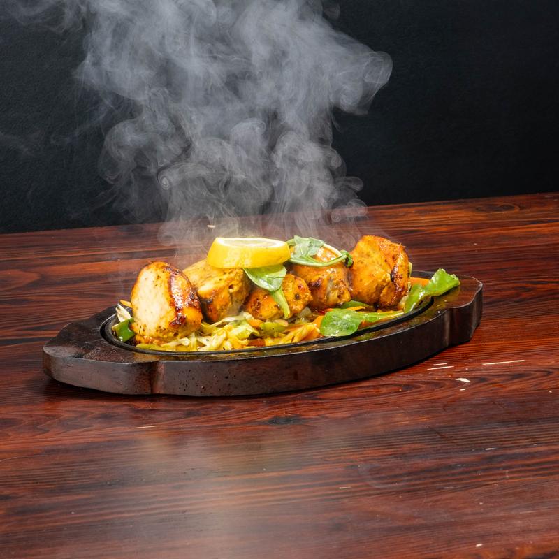Boneless lamb cubes roasted in the tandoor oven, served sizzling with sautéed onions, bell peppers cabbage and carrots.