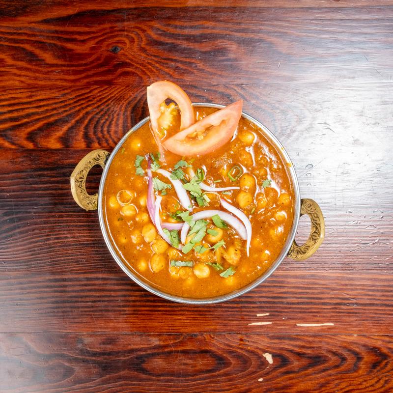 Chickpeas cooked with special herbs and spices in taste of the Himalayas gravy.