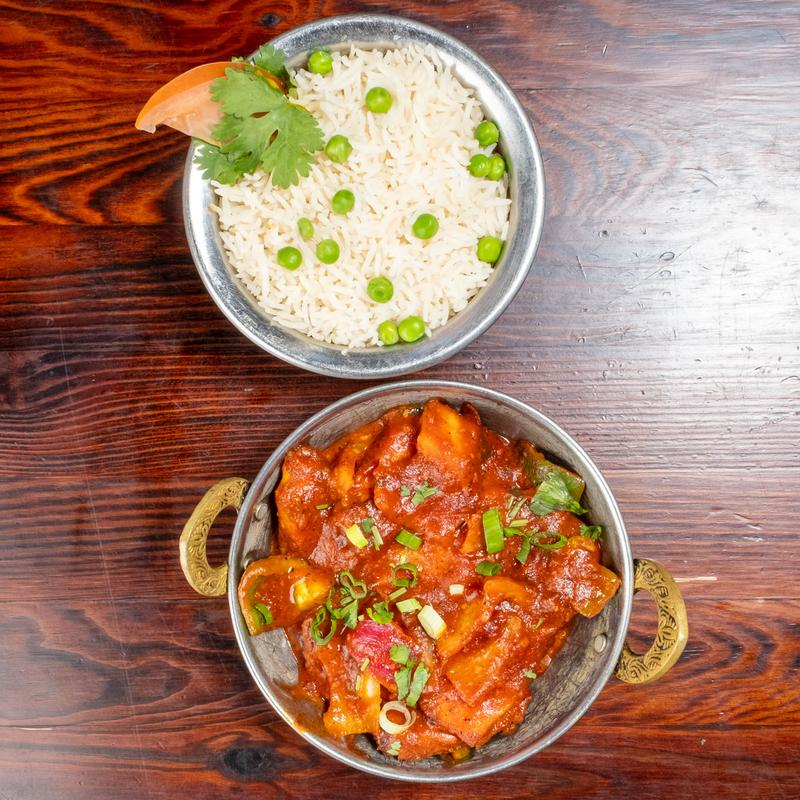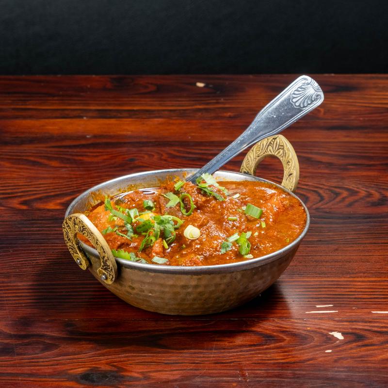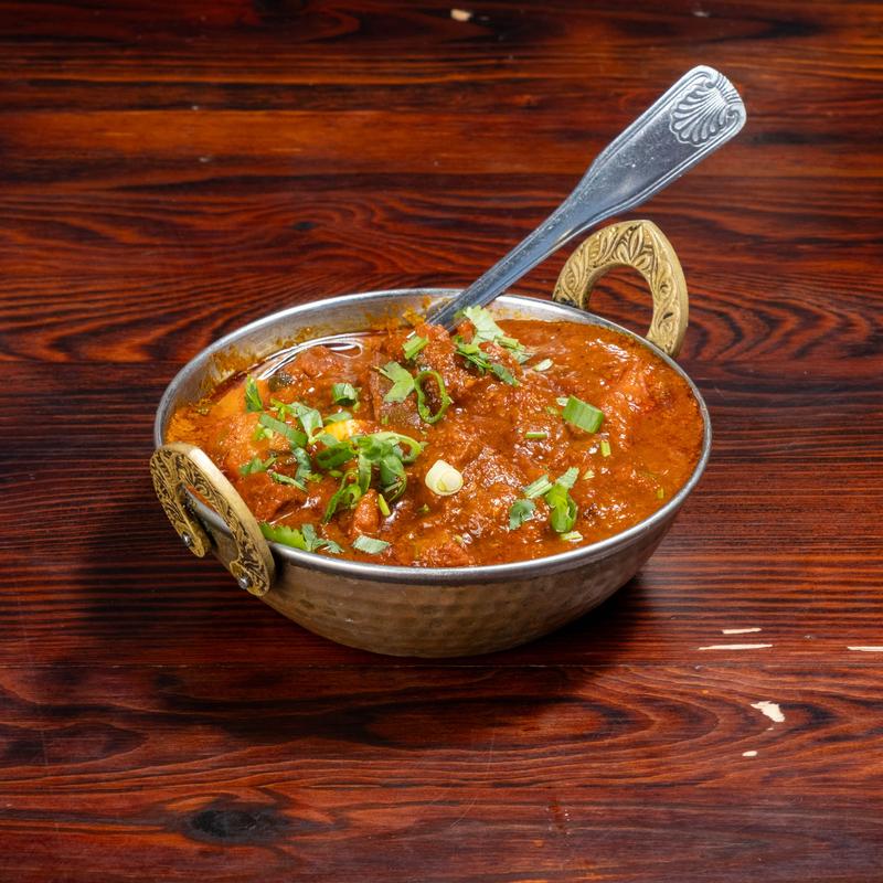 Premium lamb cooked in a gravy of tomatoes and onions with potatoes, vinegar, and chilly sauce.