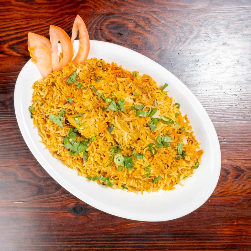 Combination of chicken, lamb, shrimp and mixed vegetable cooked with rice and biryani masala.
