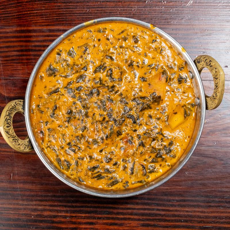Premium boneless lamb cooked with spinach paste or fresh spinach in a creamy sauce with different herbs and spices.